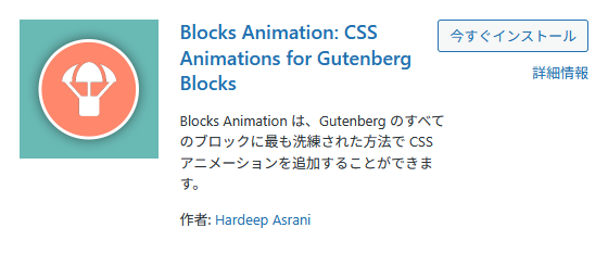 「プラグインを追加」「Blocks Animation」